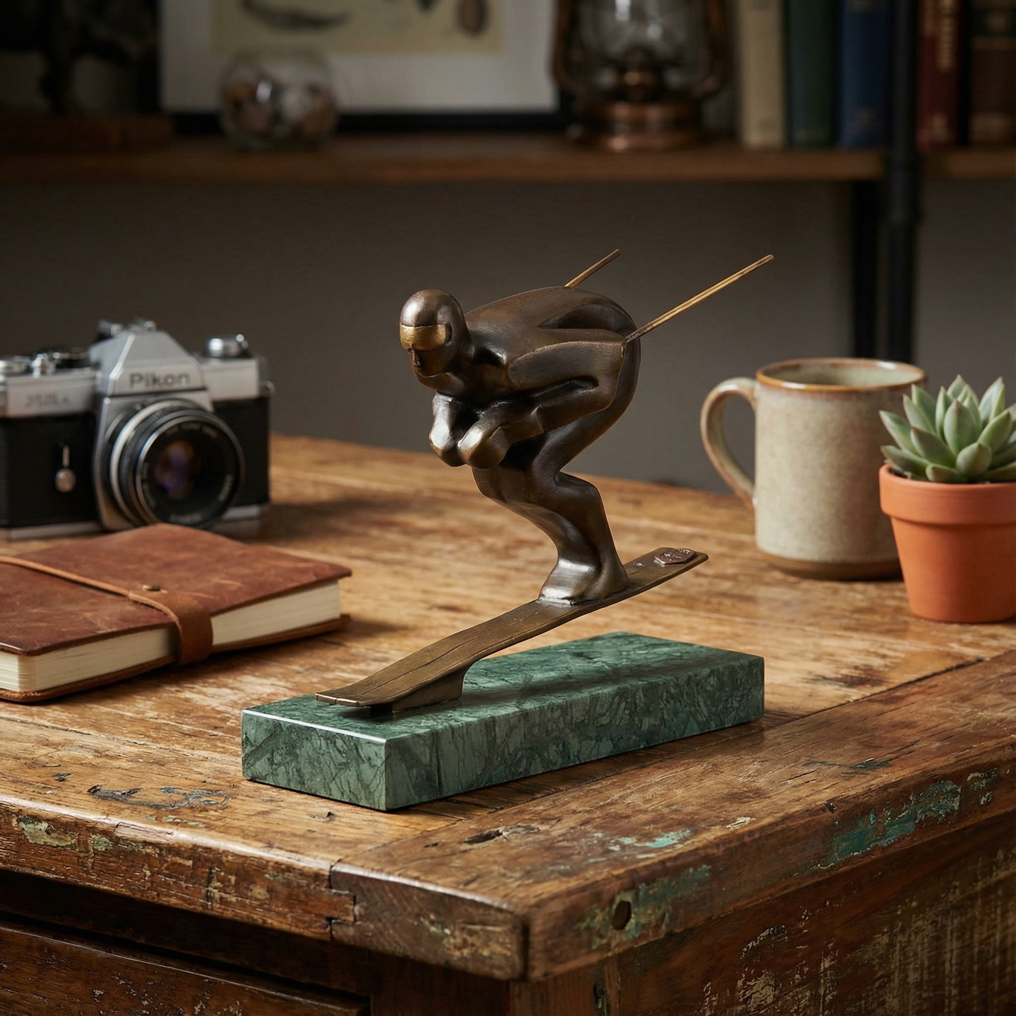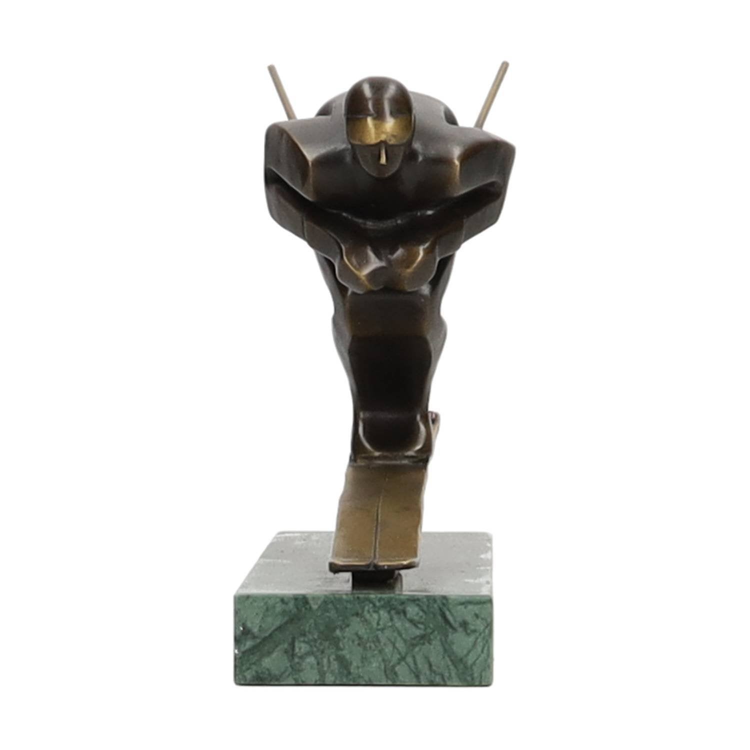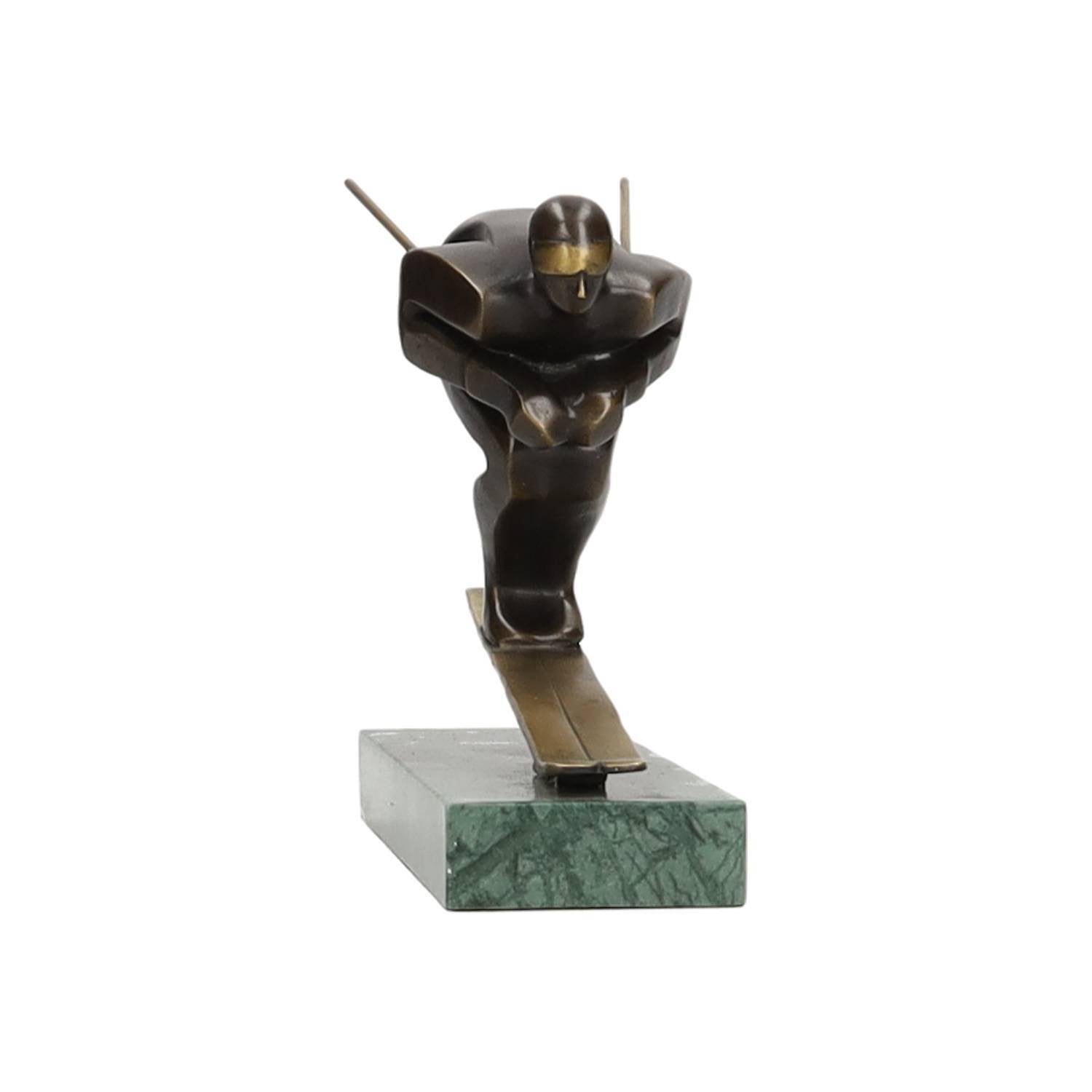 Skispringer. Gemaakt van brons op een marmeren sokkel.